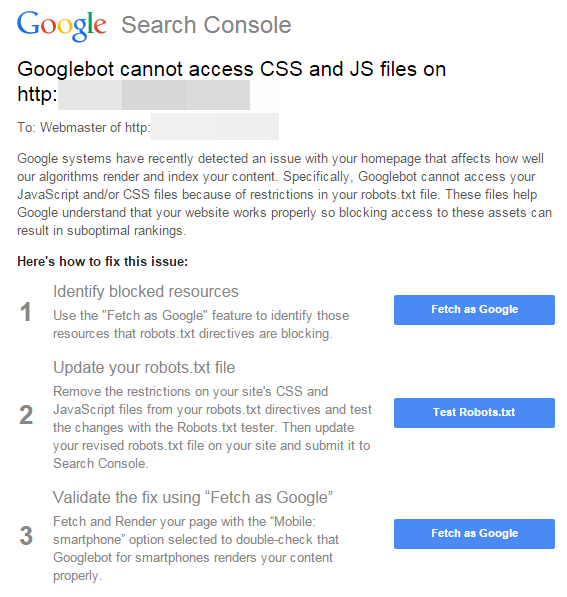 Einfacher ausgedrückt: Google hat Ihre Website neu eingelesen, um herauszufinden, ob sie für mobile Geräte passend ist. Wenn Google beim Einlesen Schwierigkeiten hatte, haben Sie eine E-Mail erhalten. Die sieht wahrscheinlich so aus (oder auf deutsch):